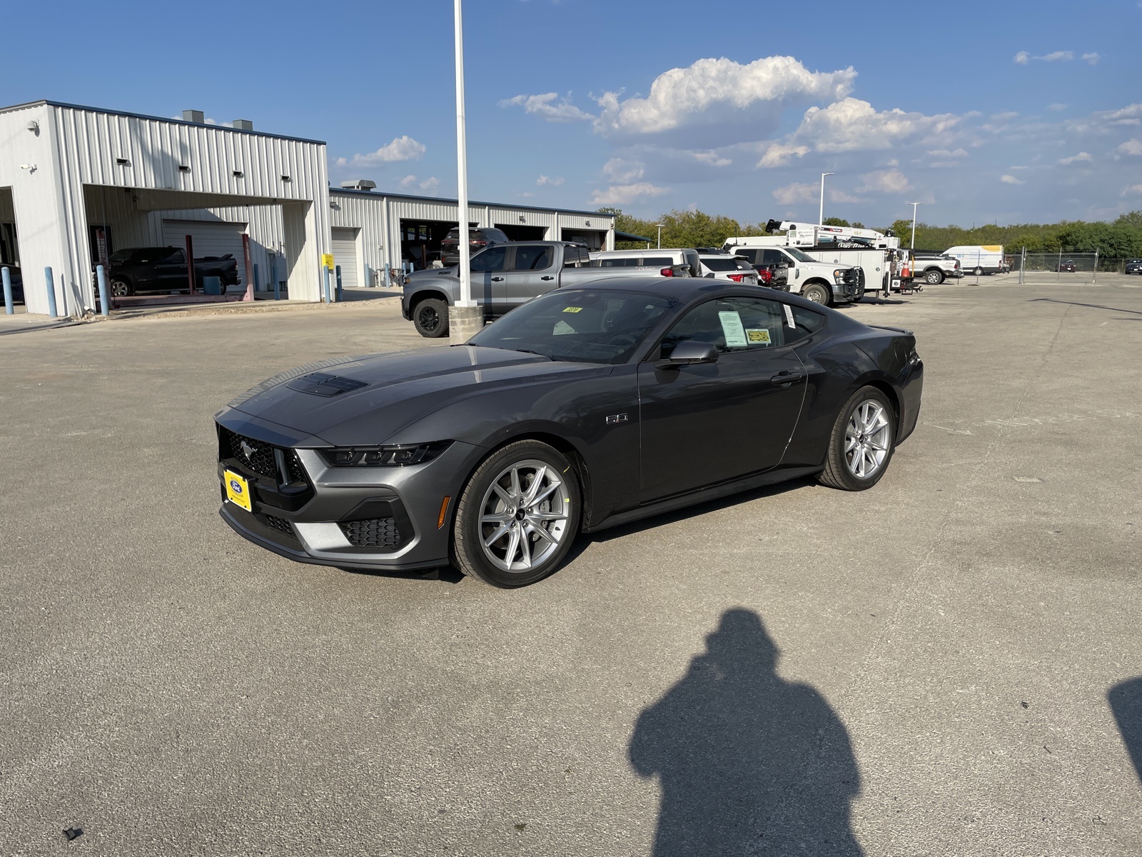 This 2025 Ford Mustang GT Premium in Carbonized Gray Metallic includes the following features: 5.0L V8 Ti-VCT 6-Speed Manual RWD Equipment Group 401A High Package (Illuminated Door-Sill Scuff Plates and Leather-Trimmed Bucket Seats w/Color Accents), Ford Co-Pilot360 Assist+, 3.55 Limited Slip Rear Axle, 4-Wheel Disc Brakes, ABS brakes, Active Valve Performance Exhaust, Air Conditioning, Alloy wheels, AM/FM Stereo, Auto High-beam Headlights, Automatic temperature control, Brake assist, Bumpers: body-color, Compass, Delay-off headlights, Driver door bin, Driver vanity mirror, Dual front impact airbags, Dual front side impact airbags, Electronic Stability Control, Emergency communication system: 911 Assist, Exterior Parking Camera Rear, Four wheel independent suspension, Front anti-roll bar, Front Bucket Seats, Front Center Armrest, Front dual zone A/C, Front reading lights, Fully automatic headlights, Illuminated entry, Knee airbag, Leather Shift Knob, Leather steering wheel, Low tire pressure warning, Occupant sensing airbag, Outside temperature display, Overhead airbag, Overhead console, Panic alarm, Passenger door bin, Passenger vanity mirror, Power door mirrors, Power steering, Power windows, Radio data system, Rain sensing wipers, Rear anti-roll bar, Rear Parking Sensors, Rear window defroster, Remote keyless entry, Speed control, Speed-sensing steering, Speed-Sensitive Wipers, Split folding rear seat, Spoiler, Sport steering wheel, Steering wheel mounted audio controls, SYNC® 4, Tachometer, Telescoping steering wheel, Tilt steering wheel, Traction control, Trip computer, Variably intermittent wipers, and Voltmeter. Price includes: $3500 – Retail Customer Cash. Exp. 01/05/2026