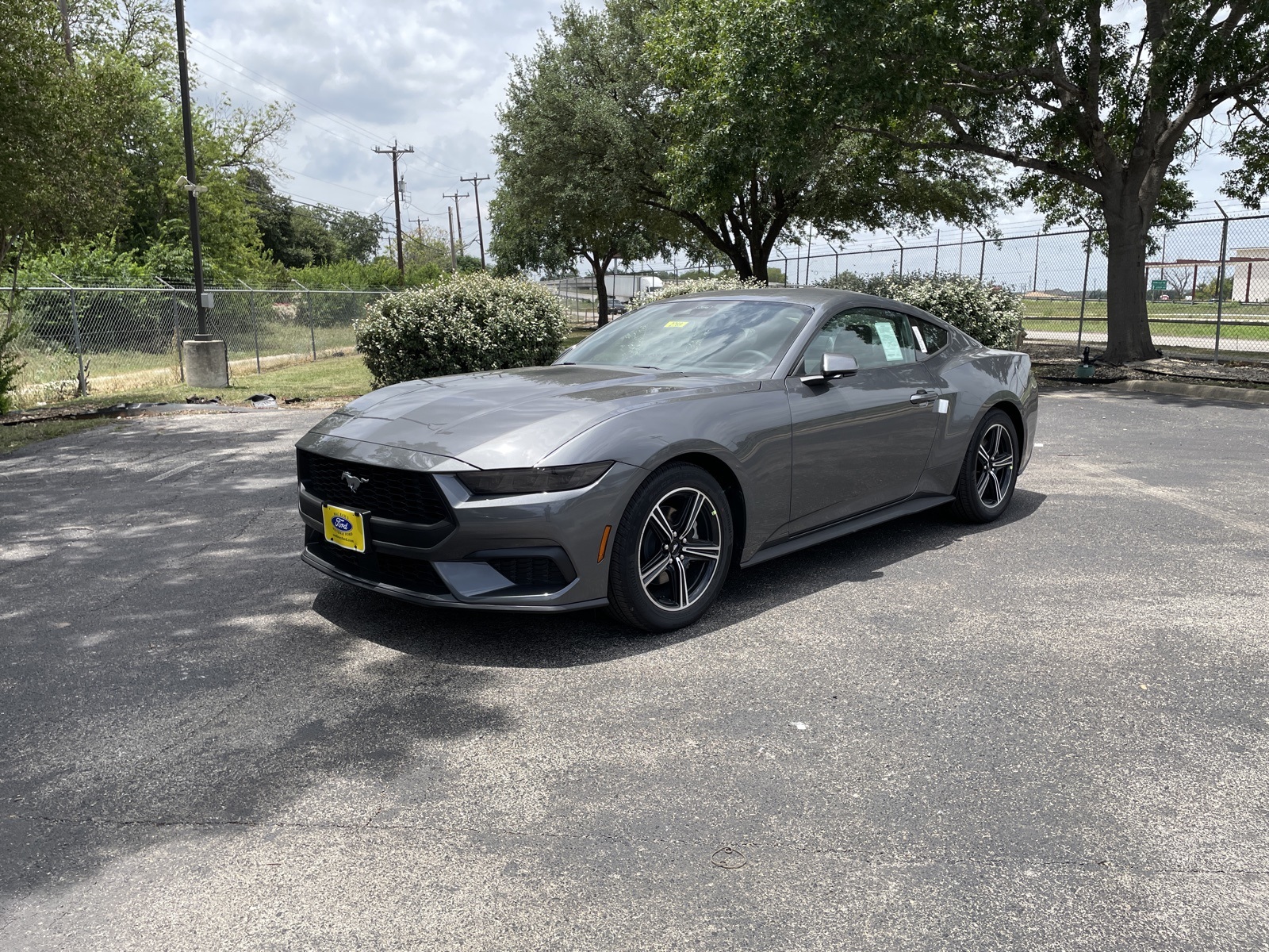 This 2025 Ford Mustang EcoBoost® in Carbonized Gray Metallic includes the following features: EcoBoost® 2.3L I4 GTDi DOHC Turbocharged VCT 10-Speed Automatic RWD 4-Wheel Disc Brakes, ABS brakes, Air Conditioning, Alloy wheels, AM/FM Stereo, Auto High-beam Headlights, Automatic temperature control, Brake assist, Bumpers: body-color, Compass, Delay-off headlights, Driver door bin, Driver vanity mirror, Dual front impact airbags, Dual front side impact airbags, Electronic Stability Control, Emergency communication system: 911 Assist, Exterior Parking Camera Rear, Four wheel independent suspension, Front anti-roll bar, Front Bucket Seats, Front Center Armrest, Front dual zone A/C, Front reading lights, Fully automatic headlights, Illuminated entry, Knee airbag, Leather Shift Knob, Low tire pressure warning, Occupant sensing airbag, Outside temperature display, Overhead airbag, Overhead console, Panic alarm, Passenger door bin, Passenger vanity mirror, Power door mirrors, Power steering, Power windows, Radio data system, Rain sensing wipers, Rear anti-roll bar, Rear Parking Sensors, Rear window defroster, Remote keyless entry, Speed control, Speed-sensing steering, Speed-Sensitive Wipers, Split folding rear seat, Sport steering wheel, Steering wheel mounted audio controls, SYNC® 4, Tachometer, Telescoping steering wheel, Tilt steering wheel, Traction control, Trip computer, Variably intermittent wipers, Voltmeter, and Wheels: 18″ x 8″ Machined-Face Aluminum. Price includes: $1500 – Retail Customer Cash. Exp. 01/05/2026