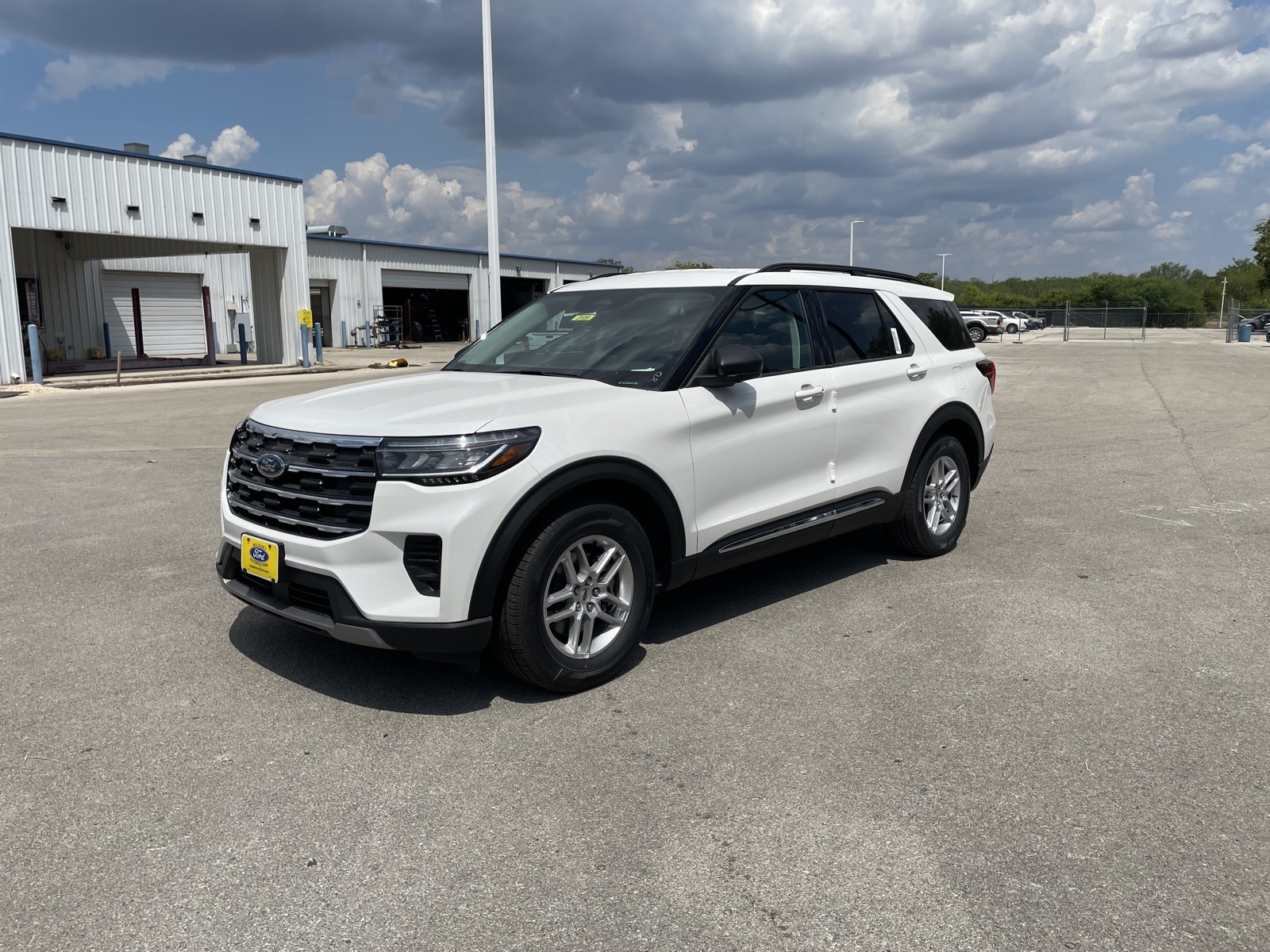 This 2025 Ford Explorer Active in White Metallic includes the following features: 2.3L EcoBoost® I-4 10-Speed Automatic RWD Equipment Group 200A Standard Package, 2nd Row 35/30/35 Bench w/E-Z Entry & Armrest, 3.58 Non-Limited Slip Rear Axle, 3rd Row seats: bench, 4-Wheel Disc Brakes, 6 Speakers, ABS brakes, Air Conditioning, Alloy wheels, AM/FM Stereo, Apple CarPlay/Android Auto, Auto High-beam Headlights, Automatic temperature control, Brake assist, Bumpers: body-color, Compass, Delay-off headlights, Driver door bin, Driver vanity mirror, Dual front impact airbags, Dual front side impact airbags, Electronic Stability Control, Emergency communication system: 911 Assist, Exterior Parking Camera Rear, Four wheel independent suspension, Front anti-roll bar, Front Bucket Seats, Front Center Armrest, Front dual zone A/C, Front License Plate Bracket, Front reading lights, Fully automatic headlights, Heated door mirrors, Heated front seats, Illuminated entry, Knee airbag, Leather steering wheel, Low tire pressure warning, Navigation System, Occupant sensing airbag, Outside temperature display, Overhead airbag, Overhead console, Panic alarm, Passenger door bin, Passenger vanity mirror, Power door mirrors, Power driver seat, Power Liftgate, Power passenger seat, Power steering, Power windows, Rear air conditioning, Rear anti-roll bar, Rear reading lights, Rear window defroster, Rear window wiper, Remote keyless entry, Speed control, Speed-sensing steering, Speed-Sensitive Wipers, Split folding rear seat, Spoiler, Steering wheel mounted audio controls, Tachometer, Telescoping steering wheel, Tilt steering wheel, Traction control, Trip computer, Unique Heated Cloth Captain’s Chairs, Variably intermittent wipers, and Wheels: 18″ Sparkle Silver-Painted Aluminum. Price includes: $1500 – Bonus Customer Cash. Exp. 01/05/2026