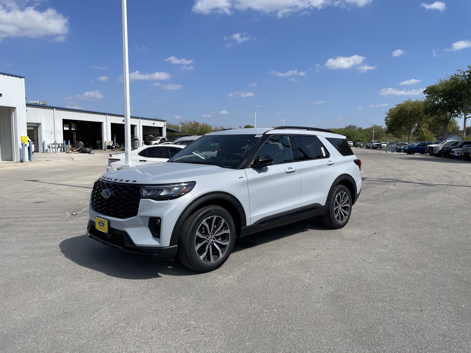 This 2026 Ford Explorer ST-Line in Space Silver includes the following features: 2.3L EcoBoost® I-4 10-Speed Automatic RWD Equipment Group 300A Standard Package (Heated Unique Cloth Captain’s Chairs and Wheels: 20″ Ebony-Painted Machined Aluminum), 10 Speakers, 3rd Row seats: bench, 4-Wheel Disc Brakes, ABS brakes, Air Conditioning, Alloy wheels, AM/FM radio: SiriusXM with 360L, Apple CarPlay/Android Auto, Auto High-beam Headlights, Automatic temperature control, Brake assist, Bumpers: body-color, Compass, Delay-off headlights, Driver door bin, Driver vanity mirror, Dual front impact airbags, Dual front side impact airbags, Electronic Stability Control, Emergency communication system: 911 Assist, Exterior Parking Camera Rear, Four wheel independent suspension, Front anti-roll bar, Front Bucket Seats, Front Center Armrest, Front dual zone A/C, Front fog lights, Front License Plate Bracket, Front reading lights, Fully automatic headlights, Garage door transmitter, Heated door mirrors, Heated front seats, Heated steering wheel, Illuminated entry, Knee airbag, Leather steering wheel, Low tire pressure warning, Navigation System, Occupant sensing airbag, Outside temperature display, Overhead airbag, Overhead console, Panic alarm, Passenger door bin, Passenger vanity mirror, Power door mirrors, Power driver seat, Power Liftgate, Power passenger seat, Power steering, Power windows, Rear air conditioning, Rear anti-roll bar, Rear reading lights, Rear window defroster, Rear window wiper, Remote keyless entry, SecuriCode™ Keyless Entry Keypad, Security system, Speed control, Speed-sensing steering, Speed-Sensitive Wipers, Split folding rear seat, Spoiler, Steering wheel mounted audio controls, Tachometer, Telescoping steering wheel, Tilt steering wheel, Traction control, Trip computer, and Variably intermittent wipers.
