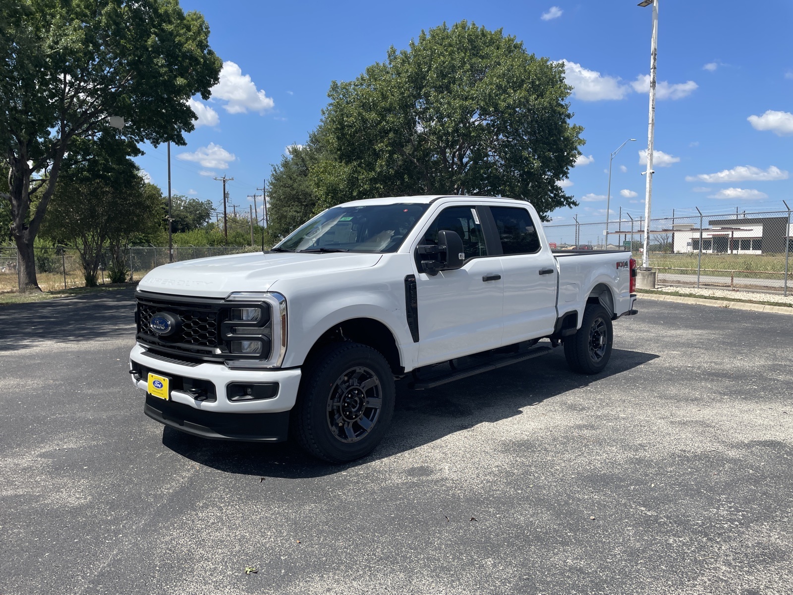This 2026 Ford F-250SD XL in Oxford White includes the following features: 7.3L V8 PFI SOHC 16V Federal 405hp 10-Speed Automatic 4WD 360-Degree Camera Package (360-Degree Camera and Rear Parking Sensors), Ford Connectivity Package (1-Year Included), FX4 Off-Road Package, GVWR: 10,000 lb Payload Package, Order Code 600A, STX Appearance Package (Cloth 40/20/40 Split Bench Seat and LED Fog Lamps), XL Driver Assist Package (Automatic High Beam), 4WD, 17″ Argent Painted Steel Wheels, 250 Amp Alternator (Gas), 3.73 Axle Ratio, 4-Wheel Disc Brakes, 6 Speakers, ABS brakes, Air Conditioning, AM/FM radio, AM/FM Stereo w/MP3 Player, Brake assist, Compass, Delay-off headlights, Dual front impact airbags, Dual front side impact airbags, Electronic Stability Control, Electronic-Locking w/3.73 Axle Ratio, Emergency communication system: SYNC® 4 911 Assist, Exterior Parking Camera Rear, Front anti-roll bar, Front Center Armrest w/Storage, Front License Plate Bracket, Front reading lights, Fully automatic headlights, HD Vinyl 40/20/40 Split Bench Seat, Heated door mirrors, Illuminated entry, Low tire pressure warning, Outside temperature display, Overhead airbag, Overhead console, Panic alarm, Passenger vanity mirror, Platform Running Boards, Power door mirrors, Power steering, Power windows, Power-Sliding Rear-Window w/Defrost, Privacy Glass, Rear reading lights, Rear step bumper, Remote keyless entry, Security system, Speed control, Split folding rear seat, Steering wheel mounted audio controls, SYNC® 4, Tachometer, Telescoping steering wheel, Tilt steering wheel, Traction control, Trailer Brake Controller, Trip computer, Turn signal indicator mirrors, Upfitter Switches (6), and Variably intermittent wipers.