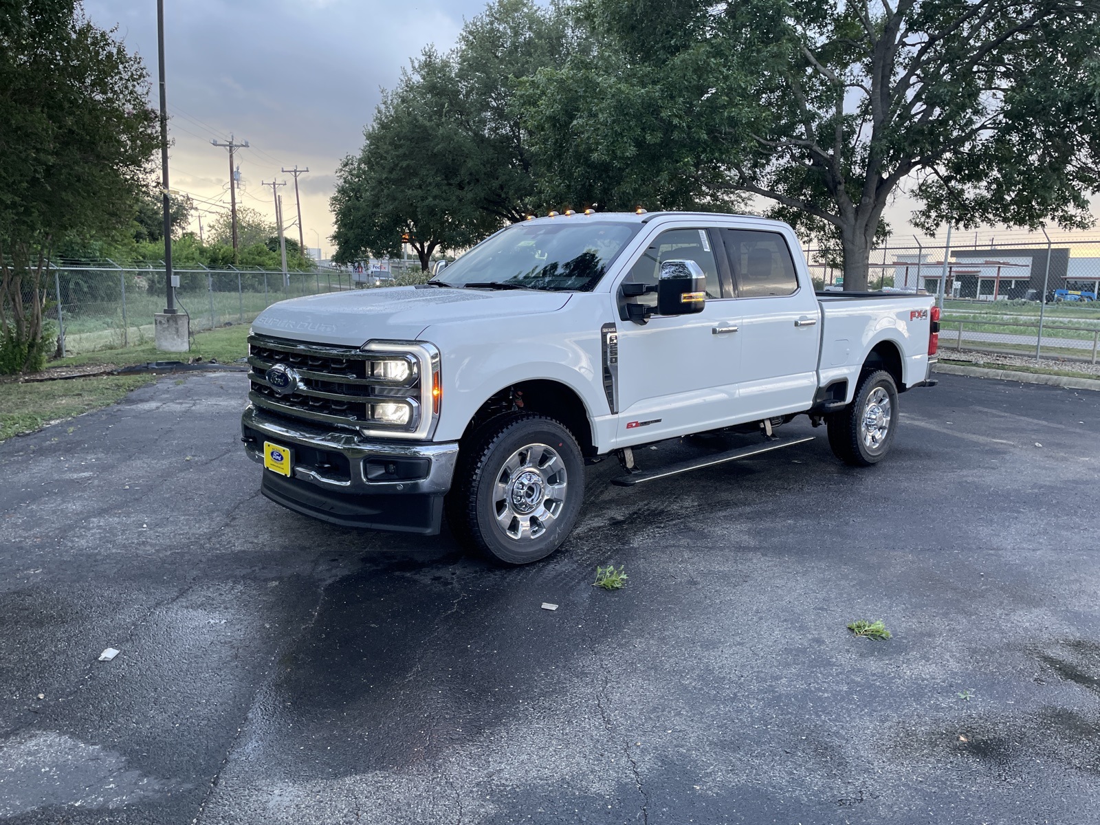 This 2025 Ford F-250SD King Ranch in Star White Metallic Tri-Coat includes the following features: 6.7L High Output Power Stroke V8 Diesel 10-Speed Automatic 4WD Chrome Package (Chrome Door Handles, Chrome Exhaust Tip, Chrome Front & Rear Bumpers, Unique Chrome Mirror Caps, and Wheels: 20″ Chrome PVD Aluminum), F-250 >10K GVWR Package, FX4 Off-Road Package (Hill Descent Control, Off-Road Specifically Tuned Shock Absorbers, and Unique FX4 Off-Road Box Decal), High Capacity 11.6″ Axle Upgrade Package, Order Code 700A, 4WD, 14 Speakers, 3.73 Axle Ratio, 4-Wheel Disc Brakes, 410 Amp Dual Alternators, ABS brakes, Adjustable pedals, Air Conditioning, Alloy wheels, AM/FM radio: SiriusXM with 360L, Auto High-beam Headlights, Auto tilt-away steering wheel, Auto-dimming Rear-View mirror, Automatic temperature control, Brake assist, Compass, Delay-off headlights, Driver door bin, Driver vanity mirror, Dual front impact airbags, Dual front side impact airbags, Electronic Stability Control, Electronic-Locking w/3.31 Axle Ratio, Emergency communication system: SYNC® 4 911 Assist, Engine Block Heater, Flow-Through Console, Front anti-roll bar, Front Bucket Seats, Front Center Armrest, Front dual zone A/C, Front fog lights, Front License Plate Bracket, Front reading lights, Fully automatic headlights, Garage door transmitter, Heads-Up Display, Heated door mirrors, Heated front seats, Heated rear seats, Heated steering wheel, Illuminated entry, Leather steering wheel, LED Roof Clearance Lights, Low tire pressure warning, Memory seat, Navigation System, Outside temperature display, Overhead airbag, Overhead console, Panic alarm, Passenger door bin, Passenger vanity mirror, Pedal memory, Power door mirrors, Power driver seat, Power passenger seat, Power steering, Power windows, Pro Power Onboard – 2kW, Radio: B&O Unleashed Sound System by Bang & Olufsen, Rain sensing wipers, Rear reading lights, Rear seat center armrest, Rear step bumper, Rear window defroster, Remote keyless entry, Security system, SiriusXM Radio w/360L, Speed control, Split folding rear seat, Steering wheel memory, Steering wheel mounted A/C controls, Steering wheel mounted audio controls, SYNC® 4 w/Enhanced Voice Recognition, Tachometer, Telescoping steering wheel, Tilt steering wheel, Traction control, Trip computer, Turn signal indicator mirrors, Twin Panel Power Moonroof, Unique King Ranch Leather 40/Console/40 Seats, Upfitter Switches (6), Variably intermittent wipers, Ventilated front seats, and Wheels: 20″ Bright Machined Cast Aluminum.