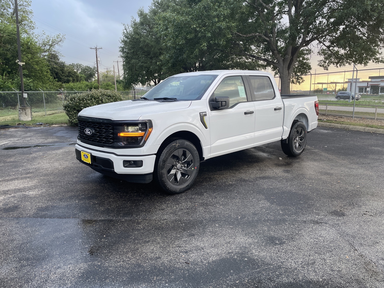 This 2025 Ford F-150 STX in Oxford White includes the following features: 2.7L V6 EcoBoost® 10-Speed Automatic RWD Equipment Group 200A Mid (LED Fog Lamps w/LED Cornering Lamp and Wheels: 20″ Dark Gray w/Machined Aluminum), GVWR: 6,426 lbs Payload Package, 3.55 Axle Ratio, 4-Wheel Disc Brakes, 6 Speakers, ABS brakes, Air Conditioning, Alloy wheels, AM/FM radio: SiriusXM with 360L, Auto High-beam Headlights, Brake assist, Bumpers: body-color, Compass, Delay-off headlights, Driver door bin, Dual front impact airbags, Dual front side impact airbags, Electronic Stability Control, Emergency communication system: SYNC® 4 911 Assist, Front anti-roll bar, Front Bucket Seats, Front Center Armrest, Front License Plate Bracket, Front reading lights, Front wheel independent suspension, Fully automatic headlights, Heated door mirrors, Illuminated entry, Low tire pressure warning, Occupant sensing airbag, Outside temperature display, Overhead airbag, Overhead console, Panic alarm, Passenger door bin, Passenger vanity mirror, Power door mirrors, Power steering, Power windows, Radio data system, Radio: AM/FM Stereo w/SiriusXM 360L, Rear Parking Sensors, Rear step bumper, Rear window defroster, Remote keyless entry, Security system, Speed control, Split folding rear seat, Steering wheel mounted audio controls, SYNC® 4 w/Enhanced Voice Recognition, Tachometer, Telescoping steering wheel, Tilt steering wheel, Traction control, Trip computer, Unique Sport Cloth 40/Console/40 Front-Seats, Variably intermittent wipers, Voltmeter, and Wheels: 18″ Gloss Black. Price includes: $1250 – Retail Bonus Cash. Exp. 01/05/2026 $500 – Retail Bonus Cash. Exp. 01/05/2026