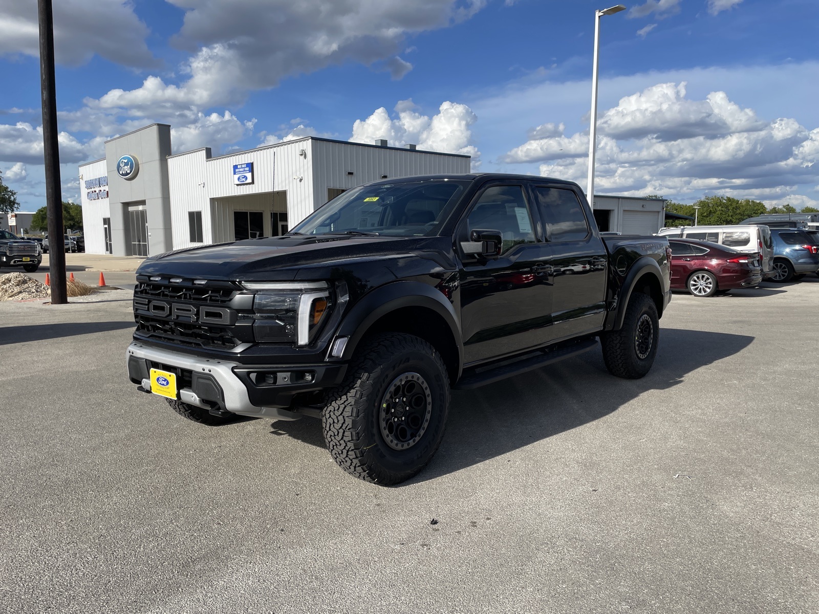 This 2025 Ford F-150 Raptor in Agate Black Metallic includes the following features: 3.5L V6 EcoBoost® 10-Speed Automatic 4WD Equipment Group 802A Raptor 37 (Alcantara Suede & Leather RECARO Front Seats, Carbon Fiber Interior Appliques, Dual Valve Shocks, Electronic Locking w/4.10 Axle Ratio, Modular Front Bumper, and Wheels: Raptor 37 Unique 17″ Cast Aluminum), 4WD, 14 Speakers, 17″ Cast Aluminum Wheels, 4-Wheel Disc Brakes, ABS brakes, Adjustable pedals, Air Conditioning, Alloy wheels, AM/FM radio: SiriusXM with 360L, Auto High-beam Headlights, Auto tilt-away steering wheel, Auto-dimming door mirrors, Auto-dimming Rear-View mirror, Automatic temperature control, Brake assist, Bumpers: body-color, Compass, Delay-off headlights, Driver door bin, Driver vanity mirror, Dual front impact airbags, Dual front side impact airbags, Electronic Stability Control, Emergency communication system: SYNC® 4 911 Assist, Front anti-roll bar, Front Bucket Seats, Front Center Armrest, Front dual zone A/C, Front fog lights, Front License Plate Bracket, Front reading lights, Front wheel independent suspension, Fully automatic headlights, Garage door transmitter, Heads-Up Display, Heated door mirrors, Heated front seats, Heated rear seats, Heated steering wheel, Illuminated entry, Lane Departure Warning System, Leather steering wheel, Leather Trim Seats, Low tire pressure warning, Memory seat, Navigation system: Connected Navigation, Occupant sensing airbag, Outside temperature display, Overhead airbag, Overhead console, Panic alarm, Passenger door bin, Passenger vanity mirror, Pedal memory, Power door mirrors, Power driver seat, Power passenger seat, Power steering, Power windows, Radio data system, Radio: B&O Unleashed Sound System by Bang & Olufsen, Rain sensing wipers, Rear reading lights, Rear step bumper, Rear window defroster, Remote keyless entry, Security system, Speed control, Speed-sensing steering, Split folding rear seat, Steering wheel memory, Steering wheel mounted audio controls, SYNC® 4 w/Enhanced Voice Recognition, Tachometer, Telescoping steering wheel, Tilt steering wheel, Traction control, Trip computer, Turn signal indicator mirrors, Twin Panel Moonroof, Variably intermittent wipers, and Ventilated front seats.