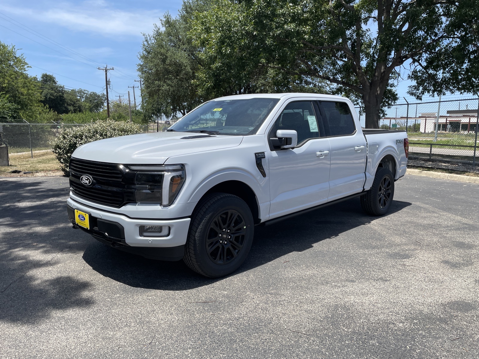 This 2025 Ford F-150 Platinum in Space White Metallic includes the following features: 3.5L V6 EcoBoost® 10-Speed Automatic 4WD Equipment Group 702A High, FX4 Off-Road Package (4×4 FX4 Off-Road Bodyside Decal, Hill Descent Control, Monotube Rear Shocks, Off-Road Tuned Front Shock Absorbers, and Rock Crawl Mode), 4WD, 4-Wheel Disc Brakes, 8 Speakers, ABS brakes, Adjustable pedals, Air Conditioning, Alloy wheels, AM/FM radio: SiriusXM with 360L, Auto High-beam Headlights, Auto tilt-away steering wheel, Auto-dimming door mirrors, Auto-dimming Rear-View mirror, Automatic temperature control, Brake assist, Bumpers: body-color, Compass, Delay-off headlights, Driver door bin, Driver vanity mirror, Dual front impact airbags, Dual front side impact airbags, Electronic Locking w/3.55 Axle Ratio, Electronic Stability Control, Emergency communication system: SYNC® 4 911 Assist, Front anti-roll bar, Front Bucket Seats, Front Center Armrest, Front dual zone A/C, Front fog lights, Front License Plate Bracket, Front reading lights, Front wheel independent suspension, Fully automatic headlights, Garage door transmitter, Heated door mirrors, Heated front seats, Heated rear seats, Heated steering wheel, Illuminated entry, Leather steering wheel, Low tire pressure warning, Max Tow Electronic Locking w/3.55 Axle Ratio, Memory seat, Navigation system: Connected Navigation, Occupant sensing airbag, Outside temperature display, Overhead airbag, Overhead console, Panic alarm, Passenger door bin, Passenger vanity mirror, Pedal memory, Power door mirrors, Power driver seat, Power passenger seat, Power steering, Power windows, Radio data system, Radio: B&O Sound System by Bang & Olufsen, Rain sensing wipers, Rear reading lights, Rear seat center armrest, Rear step bumper, Rear window defroster, Remote keyless entry, Security system, Speed control, Split folding rear seat, Steering wheel memory, Steering wheel mounted audio controls, SYNC® 4 w/Enhanced Voice Recognition, Tachometer, Telescoping steering wheel, Tilt steering wheel, Traction control, Tray Style Floor Liner, Trip computer, Turn signal indicator mirrors, Unique Multi-Contour Leather Bucket Seats, Variably intermittent wipers, Ventilated front seats, Voltmeter, and Wheels: 20″ Painted Gloss Ebony Black.